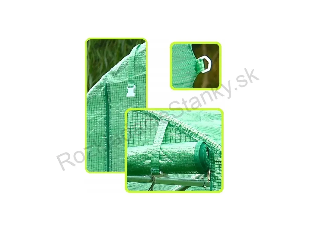Na bočných stranách fólie sa nachádzajú okná vybavené sieťkami proti komárom. Sieťky zabezpečujú ochranu plodín pred hmyzom a zároveň umožňujú optimálne vetranie, čím podporujú zdravé prostredie pre rast rastlín.