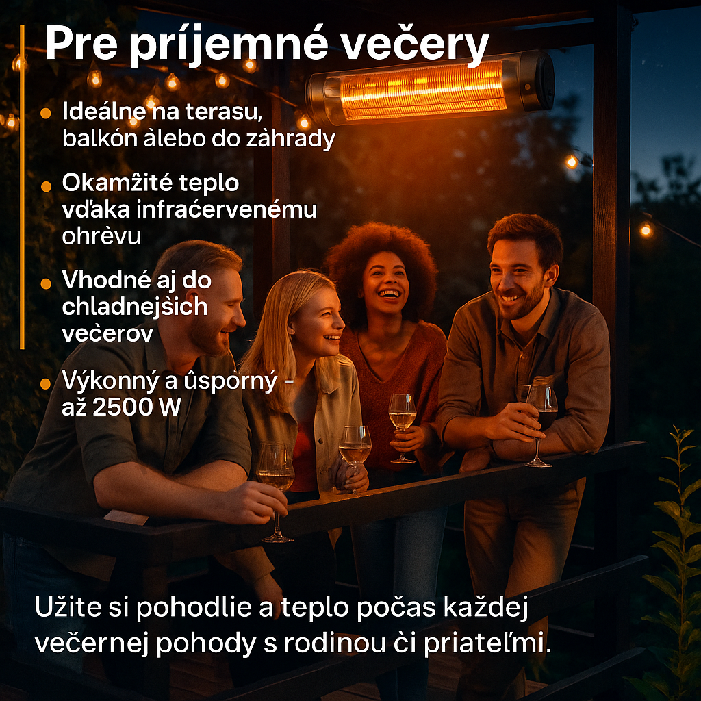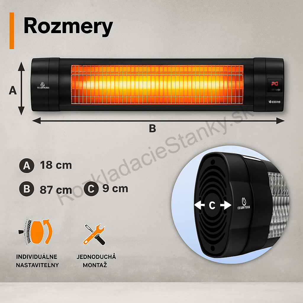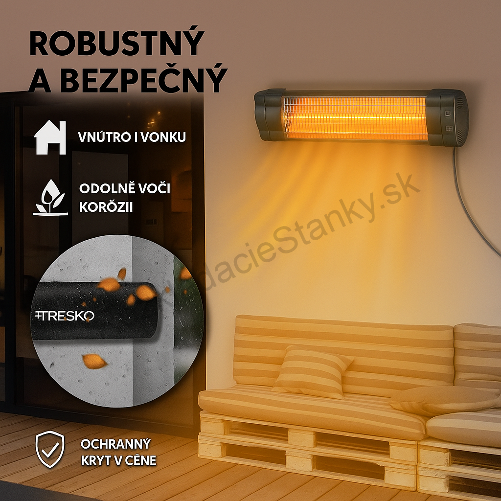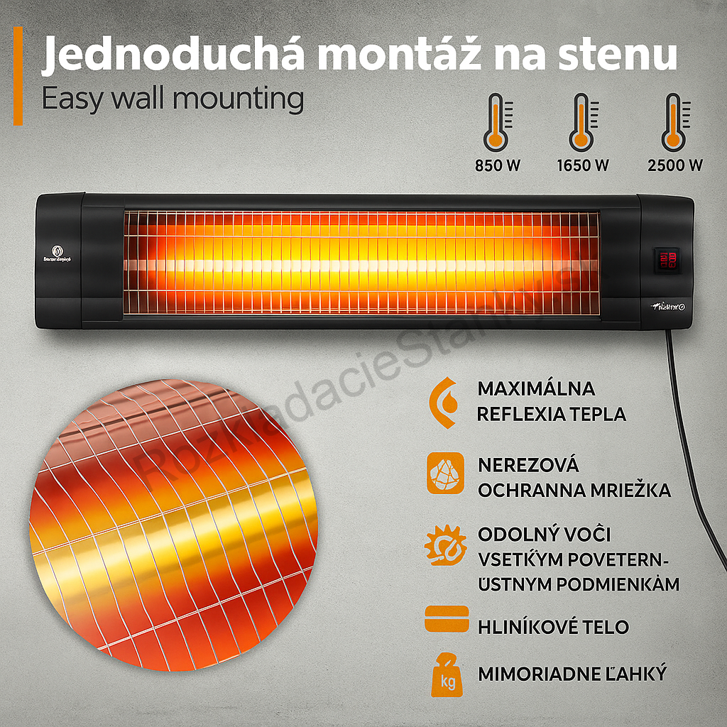 Infračervený ohrievač TRESKO 2500W na stenu s diaľkovým ovládaním, časovačom a krytom s 3 stupňami teploty. Bodové svetlá na terasu v interiéri a exteriéri, Nástenný infračervený ohrievač s LED displejom. Sálavý ohrievač.
