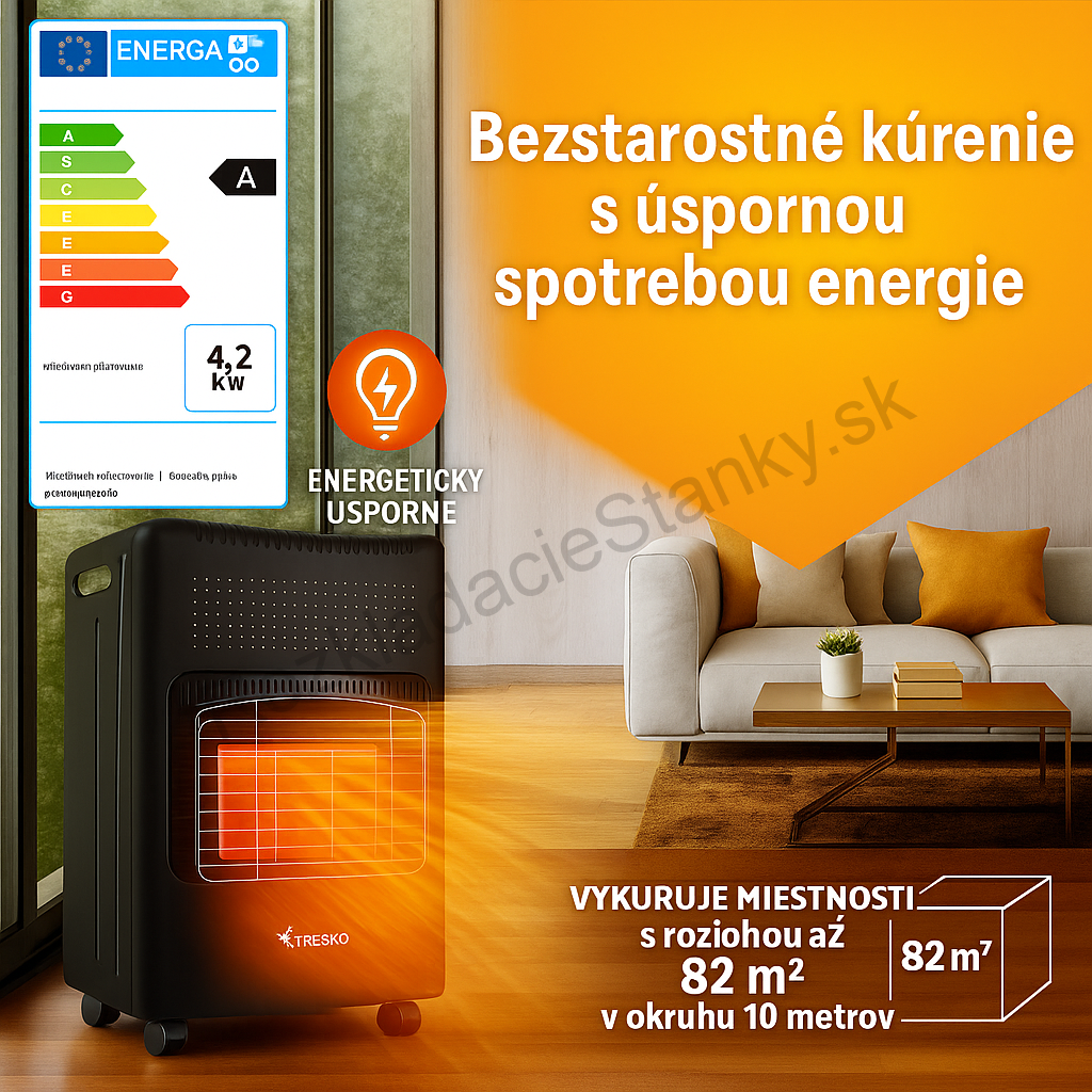Plynový ohrievač TRESKO 4200 W vrátane regulátora tlaku plynu, plynová hadica + kryt