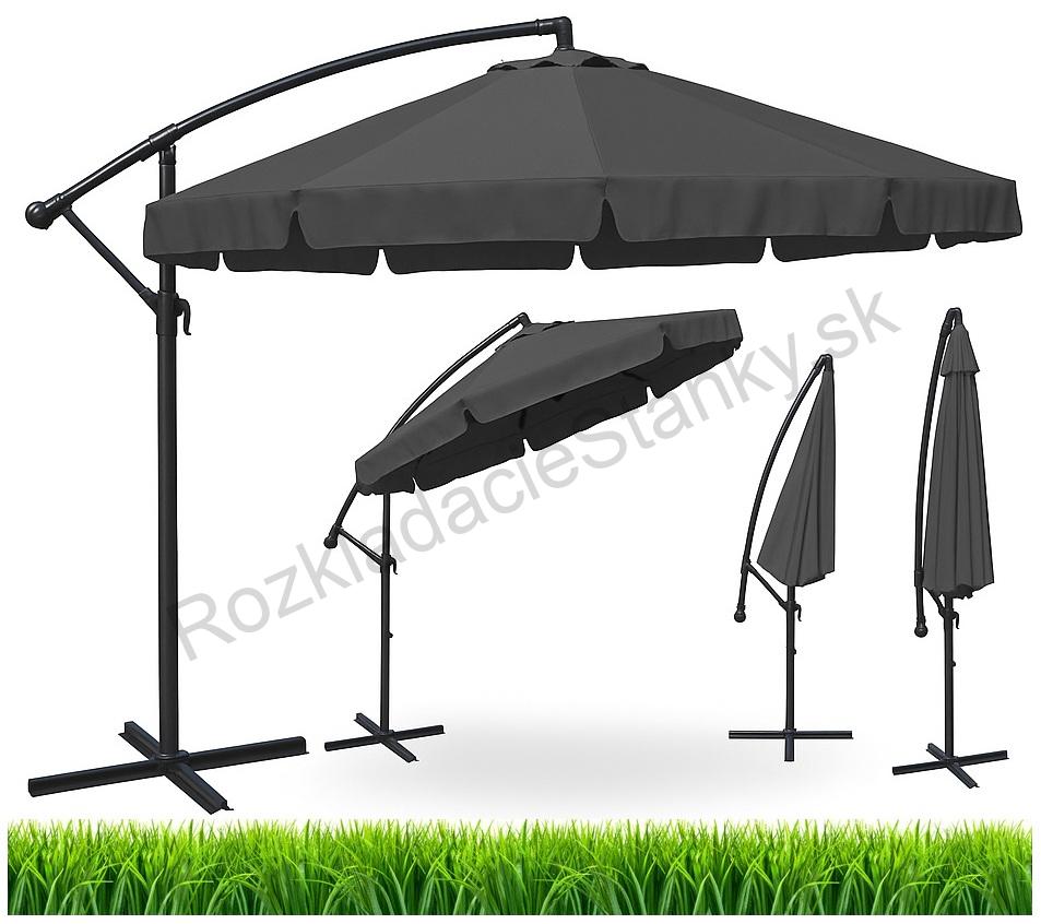 záhradný slnečník 3,5 m šedý tmavý záhradný slnečník 350cm